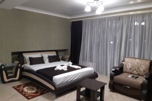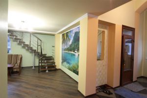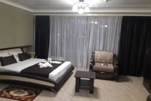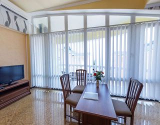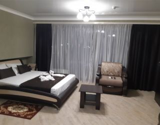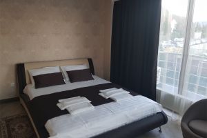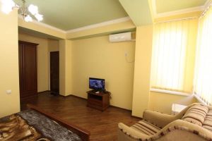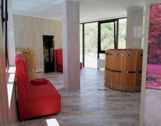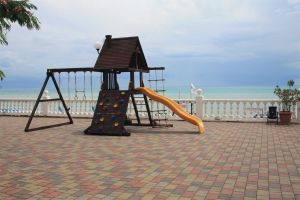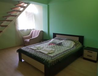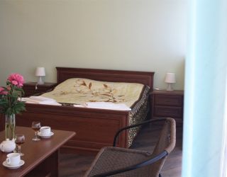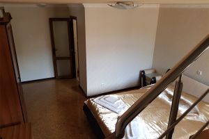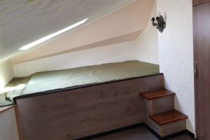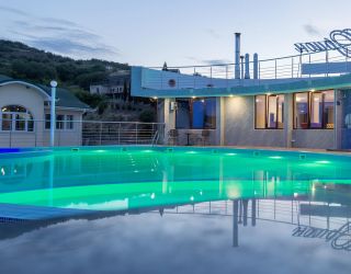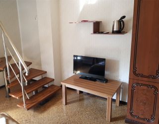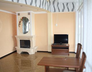 - Номер "Двухуровневый люкс" с видом на море и горы - это комфортабельный номер с изысканной обстановкой, качественной мебелью и отличным видом на море, идеально подходят для больших компаний с детьми. Условия проживания в апартаментах очень схожи с «домашними». Во всех номерах этой категории есть телевизор со спутниковой интерактивной системой, кондиционер, камин. Обстановка номера включает одну кровать с тумбочками, диван, удобный журнальный столик. Кухня оборудована всем необходимым для приготовления как завтраков, так и ужинов (холодильник, эл. печь, микроволновая печь, эл. чайник и т.д.) Пол покрыт плиткой и ламинатом. Ванные комнаты, оборудованы прекрасной сантехникой, имеется фен. В номере удобная прихожая с встроенным гардеробом. С лоджии номера открывается прекрасный вид на Черное море. На втором этаже номера - огромная кровать размером 4 на 3 м.