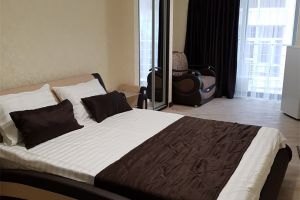 - Комфортный номер с двумя зонами и кухней. В номере два раскладных дивана. Подходит для отдыха с детьми.