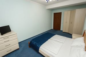 Особенностью семейного номера является наличие двух комнат. Номера оформлены в классическом стиле,оборудованы кондиционерами, телевизорами с многоканальным телевидением, wi-fi интернетом. В одной комнате: двуспальная кровать, платяной шкаф, балкон с , кондиционер, телевизор. В другой комнате: диван раскладной, два кресла, журнальный столик, телевизор, кондиционер, холодильник. Один из Семейных номеров - эксклюзивный. В нем предусмотрена мини кухня, оснащенная всем необходимым, а также в нем больше спальных мест: две двуспальные кровати и диван. Санузел с душевой кабиной, оснащен новой современной сантехникой, горячая и холодная вода круглосуточно. В распоряжении гостей комплект полотенец, мини парфюмерия. В стоимость номера входит: проживание двух персон, бассейном (в летнее время), wi-fi.Каждый номер оборудован кондиционером, холодильником, телевизором с многоканальным телевидением, WI - FI интернетом. Большая двуспальная кровать обещает крепкий здоровый сон. Также в номере имеется раскладывающийся диван, который служит как дополнительное спальное место. Ванная комната с душевой кабиной оснащена современной сантехникой, горячая и холодная вода круглосуточно. В распоряжении гостей полотенца, фен, мини-парфюмерия.