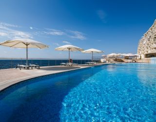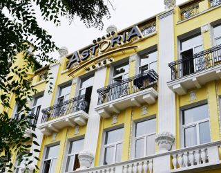 Отель "Grand Astoria/ Гранд Астория" расположен на центральной набережной города Феодосия. Из окон верхних этажей открывается вид на живописный Феодосийский залив. Здание отеля является архитектурным памятником и старейшей гостиницей города, в которой жили легендарные исторические личности и знаменитости начала - середины XX века. Пятиэтажный корпус без лифта предлагает размещение в 186 номерах различной категории. Они оборудованы собственными ванными комнатами (с ванной или душем), телевизорами, холодильниками, кондиционерами. В номерах superior и suite в комплектацию номера входят фены и сейфы. К услугам гостей: кафе, массажный кабинет, салон красоты, экскурсионное бюро, Wi-Fi, автостоянка, прачечная (стирка и глажка одежды). В 100 м оборудованный городской песчано-галечный пляж. Вблизи находятся основные достопримечательности города: галерея И. К. Айвазовского, музей А. С. Грина и Краеведческий музей, а также городская инфраструктура: магазины, кафе, бары, рестораны и летние аттракционы.