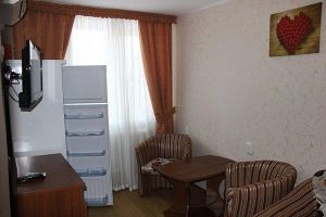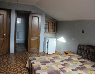 Дополнительное место - диван. Кол-во доп. мест 2 Кол-во основных мест 2 Корпус Корпус № 1 (5-ти этажный). Балкон. Мебель - вешалка, диван, зеркало, кровать двуспальная, прикроватные тумбочки, столик журнальный, стулья, шкаф. Оборудование - кондиционер, телевизор, холодильник, чайный набор посуды, электрочайник. Санузел с ванной или душевой кабиной туалетные принадлежности.Двухкомнатный номер с балконом. В пансионате всего два таких номера и оба расположены на 4 этаже 1 корпуса