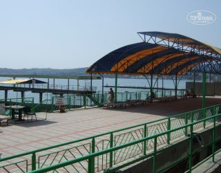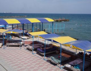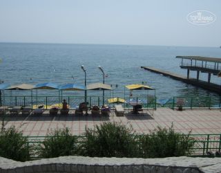 Рядом с пансионатом располагается свой трехуровневый благоустроенный галечный пляж: