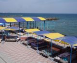 второй уровень — палатки (домики) с пластиковыми шезлонгами, расположенными на солидном удалении друг от друга, так что наслаждаться солнцем и морским воздухом можно в приятной уединённости, также там находится, санузел, раздевалка, душевые, медпункт.
