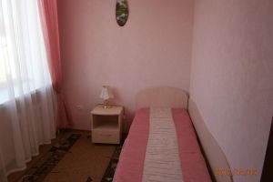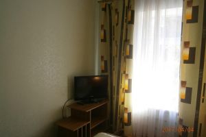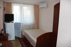 Одноместный номер Стандарт в пансионате Феодосия включает: полутороспальная кровать; прикроватные тумбочки; шкаф; кондиционер, телевизор, холодильник, санузел с душем.
