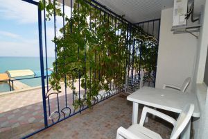 У каждого номера отдельный вход с видом на море. На веранде номера находится пластиковая мебель (стол и стулья), сушилка для белья.