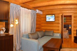 Трехкомнатный сруб – комфортабельный номер класса «Люкс», в номере две спальни, гостиная, санузел.
