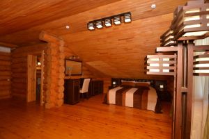 Пятикомнатный сруб – комфортабельный номер класса «Люкс», в номере четыре спальни, гостиная, санузел и финская сауна.