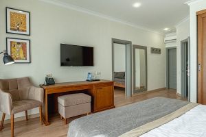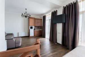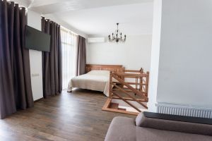 - спальные места: кровать и диван; с/у,душ.кабина,ТВ,К,холодильный шкаф,Б