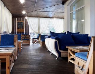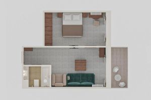 В двухкомнатном номере со спальней и гостиной свободно разместится семья из 2-х или 4-х человек. Он прекрасно подходит для тех, кто планирует совмещать отдых с работой. В номере два основных спальных места, при необходимости для сна можно использовать диван или кресло-кровать. Уютный интерьер в сдержанных тонах располагает к отдыху, а мебель с элементами ковки придает обстановке легкость и романтичность. В номере есть балкон с мебелью.
