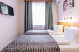 Номер создан для комфортного размещения двоих гостей на основных местах и ещё одного – на дополнительном. Уютный и ненавязчивый интерьер в прованском стиле. Балкон отсутствует.