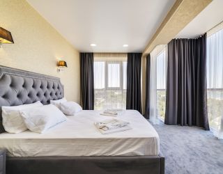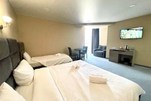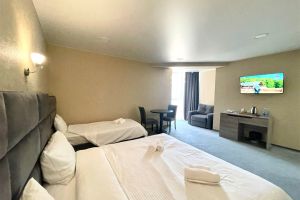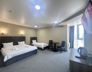 Количество комнат 3-комнатныйКомфортабельный 3-х комнатный номер на 4 основных гостя и 2 дополнительных. В номере две двуспальные кровати, диван-кровать, прикроватные тумбочки, шкаф, стул, трюмо, чайная подстанция с посудой и чаем, телефон, туалетные принадлежности, халат, тапочки, полотенца.Количество комнат 3-комнатныйКомфортабельный семейный 3-х комнатный номер на 4 основных гостя и 2 дополнительных. В номере две двуспальные кровати, диван-кровать, прикроватные тумбочки, шкаф, стул, трюмо, чайная подстанция с посудой и чаем, телефон, туалетные принадлежности, халат, тапочки, полотенцаКоличество комнат 1-комнатныйКомфортабельный двухместный номер на 2 гостя. В номере двуспальная кровать, прикроватные тумбочки, шкаф, стул, трюмо, чайная подстанция с посудой и чаем, телефон, туалетные принадлежности, халат, тапочки, полотенца.Количество комнат 2-комнатныйКомфортабельный 2-х комнатный номер на 2 основных гостя и 3 дополнительных. В номере двуспальная кровать, диван-кровать, кресло-кровать, прикроватные тумбочки, шкаф, стул, трюмо, чайная подстанция с посудой и чаем, телефон, туалетные принадлежности, халат, тапочки, полотенцаКоличество комнат 1-комнатныйКомфортабельный двухместный номер на 2 гостя и 1 дополнительное место. В номере двуспальная кровать, кресло-кровать, прикроватные тумбочки, шкаф, стул, трюмо, чайная подстанция с посудой и чаем, телефон, туалетные принадлежности, халат, тапочки, полотенцаКоличество комнат 1-комнатныйКомфортабельный двухместный номер на 2 гостя и 1 дополнительное место. В номере двуспальная кровать, кресло-кровать, прикроватные тумбочки, шкаф, стул, трюмо, чайная подстанция с посудой и чаем, телефон, туалетные принадлежности, халат, тапочки, полотенцаКоличество комнат 1-комнатныйSuperior Triple - семейный вариант для 3х. человек, в номере большая двух-спальная кровать, односпальная и кресло кровать в виде дополнительного места.- Комфортабельный 3-х комнатный номер на 4 основных гостя и 2 дополнительных. В номере две двуспальные кровати, диван-кровать, прикроватные тумбочки, шкаф, стул, трюмо, чайная подстанция с посудой и чаем, телефон, туалетные принадлежности, халат, тапочки, полотенца.