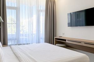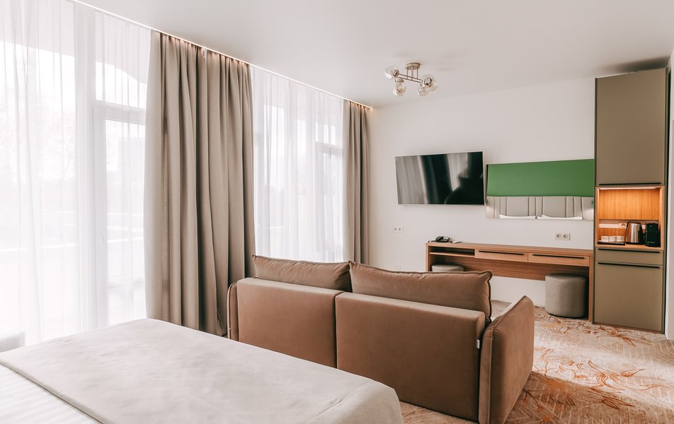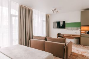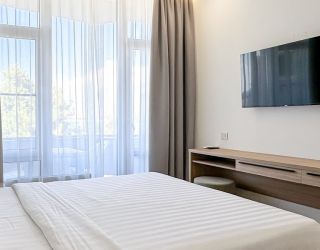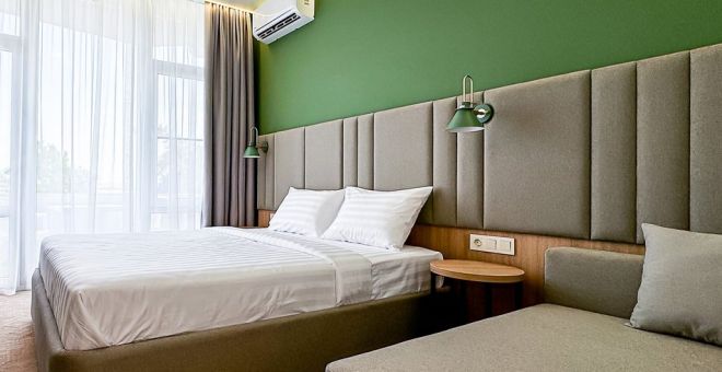 Сервис понравился Отдыхали с 7.08 по 15.08. с мужем. Нам все очень понравилось: номер дизайн после ремонта. В номере чайник, гладильная доска, утюг, 2 халата, тапочки, гигиенический набор. Все новое. В столовой кормят хорошо, единственный минус - все теплое, но есть микроволновка, можно подогреть. Есть промежуточное питание между завтраком и обедом, обедом и ужином. Персонал приветливый. Есть зимний сад, бассейн, р... Отдыхали с 7.08 по 15.08. с мужем. Нам все очень понравилось: номер дизайн после ремонта. В номере чайник, гладильная доска, утюг, 2 халата, тапочки, гигиенический набор. Все новое. В столовой кормят хорошо, единственный минус - все теплое, но есть микроволновка, можно подогреть. Есть промежуточное питание между завтраком и обедом, обедом и ужином. Персонал приветливый. Есть зимний сад, бассейн, ребята-аниматоры-молодцы, развлекали детей у бассейна, есть мероприятия и для взрослых. Бар у бассейна платный. Вся инфраструктура Анапы в шаговой доступности: набережная, пляж, парк аттракционов, летний театр. Автовокзал в 20 минутах ходьбы. Отдохнули отлично! Читать дальше Скрыть