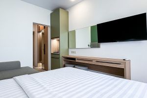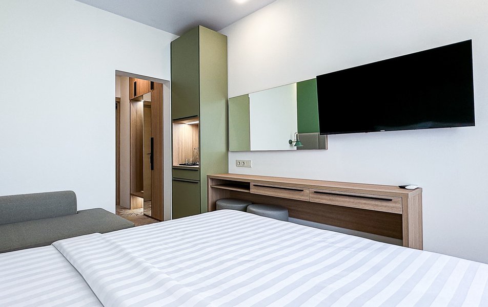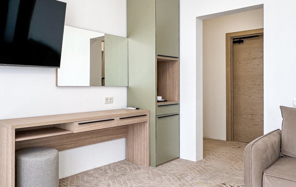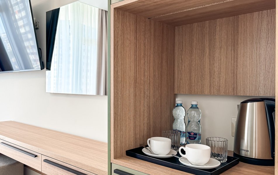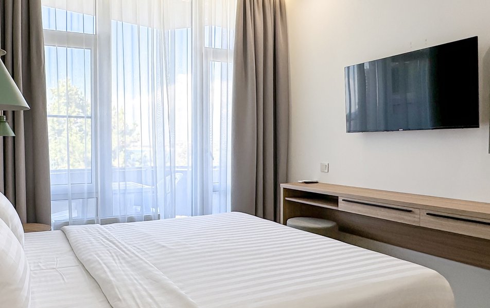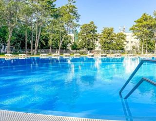 Сервис понравился Соглашусь с основным мнением - до All inclusive (как они себя называют) им ещё очень далеко. Но при этом цена прям явно завышена - 3900 с человека в сутки (7800 за номер). Новые номера (дизайн) уютные, современные, но маленькие и находятся на 2-3 этажах (без вида). Чайник с чашками вроде есть, но без чая и кофе. Кулера с водой на этаже нет. Приходится идти на ресепшн или на 4 этаж! Кофемашина на р... Соглашусь с основным мнением - до All inclusive (как они себя называют) им ещё очень далеко. Но при этом цена прям явно завышена - 3900 с человека в сутки (7800 за номер). Новые номера (дизайн) уютные, современные, но маленькие и находятся на 2-3 этажах (без вида). Чайник с чашками вроде есть, но без чая и кофе. Кулера с водой на этаже нет. Приходится идти на ресепшн или на 4 этаж! Кофемашина на ресепшене платная (напомню - All inclusive). Вообще про кофемашины тут не слышали - в столовой самое дешёвое растворимое из банки. Интернет и современное ТВ работает стабильно. Анимации или каких-то развлечений не заметили (расписание очень скудное). Сегодня воскресенье - анимация не работает. Бассейн хоть и красивые, но точно без подогрева. Отличное расположение санатория относительно локаций (но тут заслуги их нет). Очень много социальников и инвалидов и из-за этого питание в столовой рассчитано на них. Из соков - только компоты в пластиковых мерных кувшинах (на фото). Каких-то солёностей, а уж тем более вредных вкусностей не ждите. Яичницы или варёных яиц на завтрак нет. Оливки, маслины - мимо (и это за 3900 в сутки). Само собой - никакого алкоголя. Промежуточное питание по строгому расписанию два раза в день (с 10 до 13 и с 15 до 18) - пончики, жареная картошка и кусочки пиццы с компотом. До своего пляжа очень далеко и он тоже не впечатляет (старые деревянные лежаки). Общее впечатление за счёт номеров хорошее, но точно не за эту цену. За счёт столовой снижаю отзыв на 2 звёзды (пластиковые бадьи с компотом это нечто). Читать дальше Скрыть