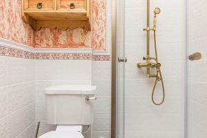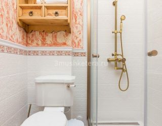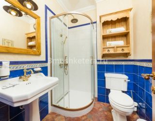 В ванной комнате: санузел с душем, полотенца, фен, косметические принадлежности (мыло, шампунь).