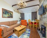 В номере: балкон, двуспальная кровать, раскладной диван, прикроватные тумбочки, рабочий стол, шкаф, 2 телевизора, мини-бар, сплит-система, постельное белье, набор чайной посуды.