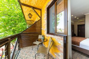 Номера с видом на ул. Терскую не имеют балкона, но оснащены французским панорамным окном (то есть французский балкон).