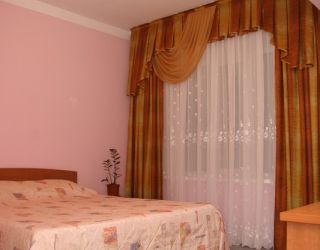 Мебель - кровать двуспальная и две односпальные кровати,  кресло , тумбы прикроватные, комод (или туалетный столик),  телевизор, шкаф для одежды, прихожая, холодильник, сплит-система.