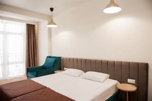 • Светлый однокомнатный номер рассчитан на размещение двоих гостей на основных местах и одного ребёнка до 5 лет включительно без предоставления доп. места.