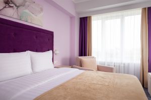 Просторный номер с двуспальной кроватью, раскладным креслом. Данная категория номера без балкона.