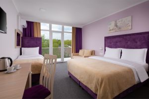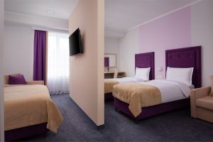 Просторный номер с двуспальной и односпальной кроватями, раскладным креслом. Данная категория номера без балкона.