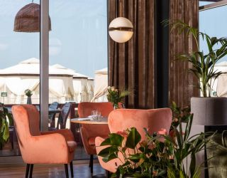 Изысканный интерьер апартаментов с террасой стоит того, чтобы остановить внимание на многочисленных деталях. Номер площадью 250 м2 кажется утонченным и гостеприимным. Светлые оттенки стен и текстиля элегантно подчеркивают предметы мебели из натурального дерева или обивку цвета морской волны.