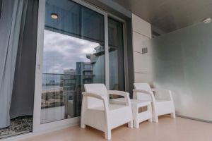 Номер оснащен всей необходимой для комфортного отдыха техникой и мебелью. Дополнительное преимущество: балкон с безопасным ограждением и мебелью.
