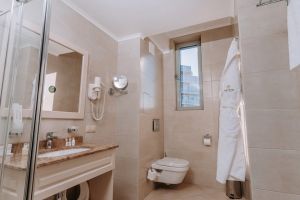 Просторный номер площадью 35 м2 выполнен в классическом спокойном стиле. Большие панорамные окна визуально делают пространство еще свободнее и воздушнее. Две отдельные кровати «кинг сайз» с ортопедическими матрасами и плотные шторы с эффектом «блэкаут» позволят насладиться здоровым сном во время отдыха.