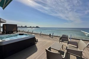 Это самая эксклюзивная категория среди всех номеров Гранд Отель Анапа. На площади 270 м2 расположились две просторные спальни, светлая и красивая гостиная, лаунж-зона на террасе с видом на море и, главное, индивидуальный инфинити-бассейн.
