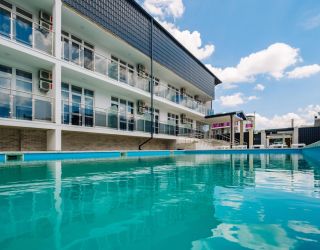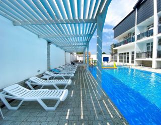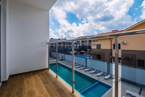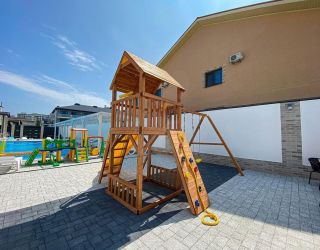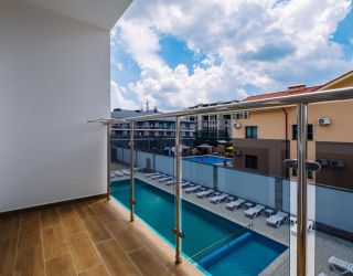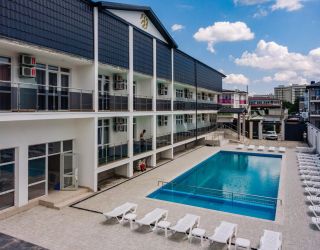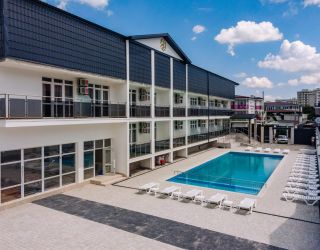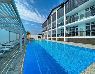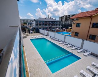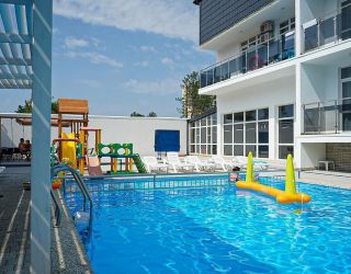 Отель новый, всё свежее и чистое. Персонал приветливый и обходительный. Есть детская площадка, гриль зона. Бассейн просторный и чистый, отгорожена детская мелкая часть «лягушатник». Вокруг бассейна расставлены шезлонги для загара, есть зона аэрария для приема воздушных ванн в тени.