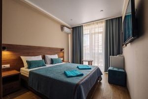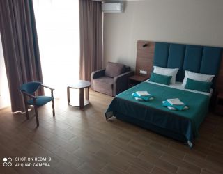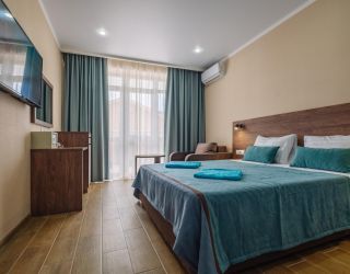 Два номера стандартной комплектации с отдельными входами и соединённые между собой переходом (дверью). Двери могут закрываться изнутри в обеих номерах.Из каждого номера есть выход на балкон, и в каждом номере своя ванная комната. Очень удобно для большой семьи или для компании друзей.