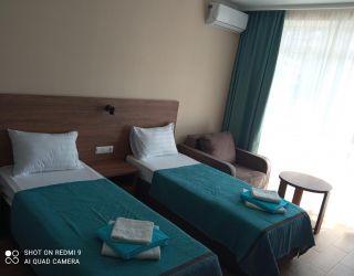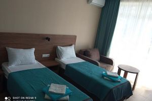 Отличный отель! Расположен в тихом месте недалеко от пляжа. Свой бассейн, лежаки, зона курения. Номер был на первом этаже, в нем - холодильник, ты, своя ванная комната, кондиционер,сейф,на двери электронный ключ. Каждый день происходила уборка номера, приблизительно раз в 2 дня смена пляжных и ванных полотенец, смена постельного белья. Хорошая ванная комната-шампуни, гели, есть фен.