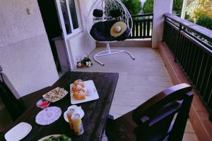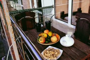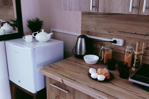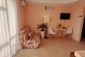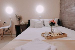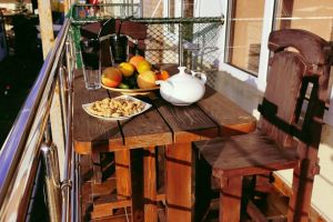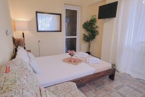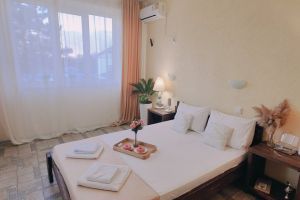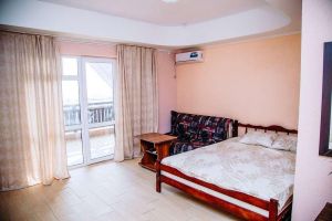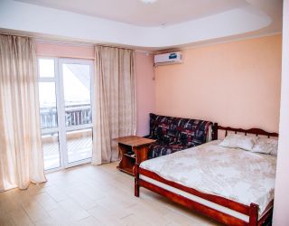 • В номере двуспальная кровать, прикроватные тумбочки, шкаф, журнальный столик, вешалка, зеркало, стулья, мини-кухня, обеденная зона. Из удобств: ТВ, холодильник, сплит-система, балкон.