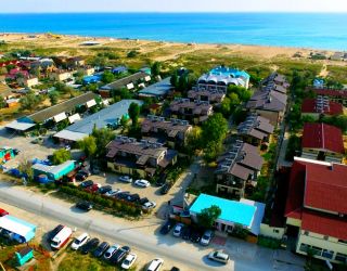 Пляж с чистым песком и ракушками, немноголюдно, приветливый персонал, хорошие домики и ухоженная территория.