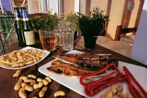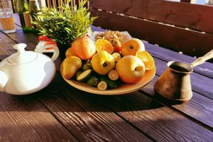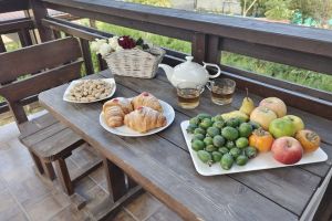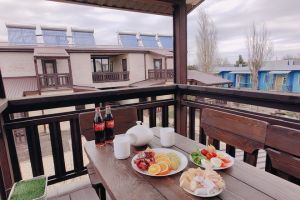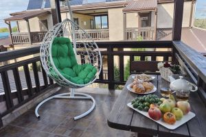 • В номере двуспальная и односпальные кровати, прикроватные тумбочки, шкаф, журнальный столик, вешалка, зеркало, стулья. Из удобств: ТВ, холодильник, сплит-система, терраса.