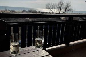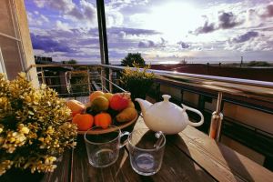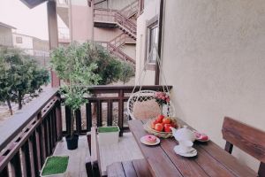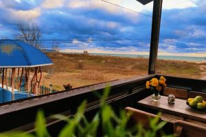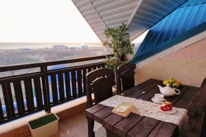Мы находимся в 0 метров от моря - это самый берег. Всего в 1 минуте ходьбы от нас находиться прокат, где можно получить лежаки и зонты на пляже.