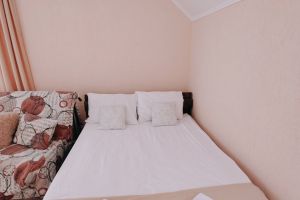• В номере двуспальная кровать, прикроватные тумбочки, шкаф, журнальный столик, вешалка, зеркало, стулья. Из удобств: ТВ, холодильник, сплит-система.