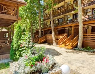 Территория отеля более 5 гектар, озелененная с тенистыми аллеями, цветущими клумбами, оборудована гамаками и беседками.