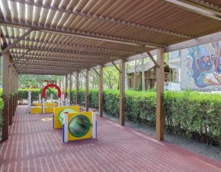 Обширная территория предлагает возможности как для активного отдыха: спортплощадки для игры в футбол, волейбол, баскетбол, прокат велосипедов, так и для спокойного времяпрепровождения в тени парковой зоны и беседках.