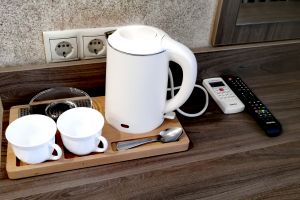• Двуспальная или две односпальные кровати, двуспальный раскладной диван, прихожая, шкаф, стол, стул, прикроватные тумбочки, журнальный столик, зеркало, телевизор, мини-холодильник, чайный набор, кондиционер.