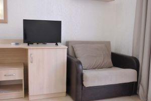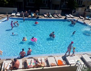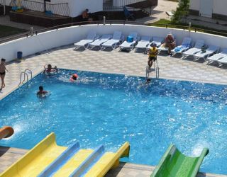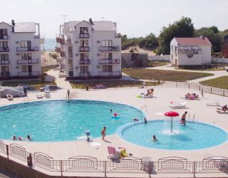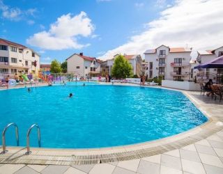 Прекрасное место для отдыха с детьми! Пансионат находится на берегу моря. Пляж - золотой песок. Вот где хорошо строить замки! Море мелкое. Для желающих поплавать надо зайти поглубже. На территории пансионата есть два бассейна и небольшой аквапарк, детская площадка и прокат велосипедов и самокатов. Для детей и взрослых чудесная анимация. Питание - шведский стол. Единственный минус во всём этом благополучии - водоросли в море. Причём, раз на раз не приходится. Нет определённого времени, когда водоросли появляются. Это может быть и июнь и август, как повезёт. На территории есть киоск, где можно купить экскурсию и на автобусе отправится в Абрау-Дюрсо, например, или на кипарисовое озеро. Номера расположены в отдельно стоящих четырёх этажных домиках. Лифтов в домиках нет. Территория ухожена, много цветов