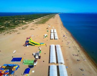 Пансионат "Малахит" имеет в своем распоряжении большой песчаный пляж. Пляж оборудован лежаками, водными аттракционами. Играйте в пляжный волейбол с друзьями, катайтесь на гидроциклах.
