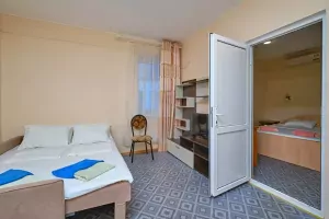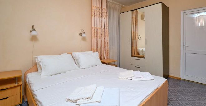 Замечательно! Море - первая линия. В цену входит: номер, трехразовое питание, лежаки и навес, бассейн с паровыми кабинками, стоянка. Номер двухместный двухкомнатный очень замечательный. Главное что в нём два санузла. Принимают с животными. Скрыть