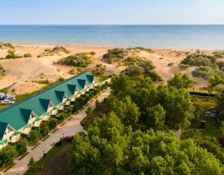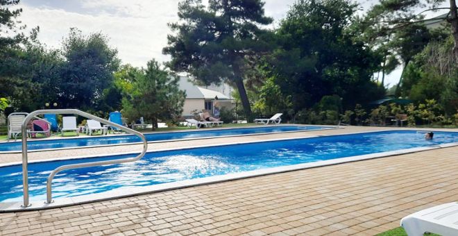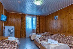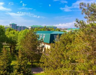 Комплекс пансионата включает в себя 6 корпусов разной этажности, расположенных на обширной территории, утопающей в зелени и цветах. В парке пансионата – более 500 деревьев лиственных и хвойных пород, в том числе имеются экзотические растения На территории пансионата работает столовая, где можно заказать завтраки, обеды и ужины, приготовленные из свежих и местных продуктов. Для отдыхающих работает кабинет массажа, есть настольный теннис и бильярд, спортивные площадки на свежем воздухе. Для малышей организована игровая площадка, есть детская комната и компьютерный клуб. Среди услуг — багажная комната, охраняемая автостоянка, а также круглосуточный медицинский пункт.