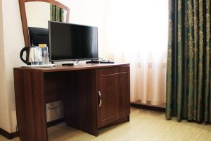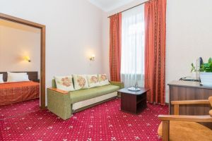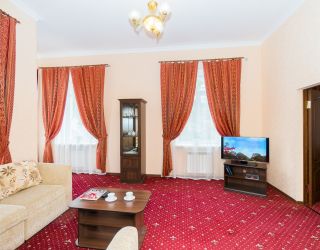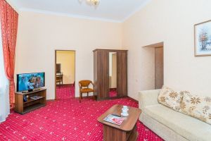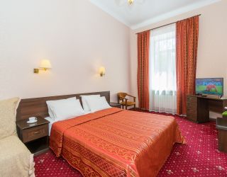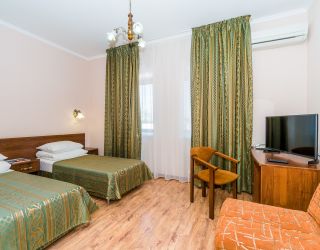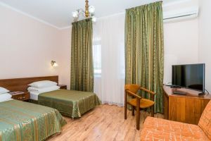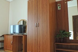 Количество комнат 1-комнатныйКоличество комнат 1-комнатныйТип номера ПолулюксДополнительное место кресло-кровать, раскладушкаКол-во доп. мест 2 Кол-во номеров 14 Кол-во основных мест 2 Площадь (кв. м) 20 Мебель вешалказеркалокресло-кроватькровати односпальныеобувная полкаприкроватные тумбочкистолстульяшкафОборудование мини-холодильниксплит-системателевизортелефонСанузел с ваннойтуалетные принадлежностиСервис смена полотенец: 1 раз в 3 днясмена постельного белья: 1 раз в 5 днейуборка номера: ежедневноуслуги телефонной связи по территории отеляКоличество комнат 1-комнатныйКоличество комнат 1-комнатныйТип номера СтандартныйКол-во номеров 2 Кол-во основных мест 1 Площадь (кв. м) 10-12 м² Мебель вешалказеркалокровать односпальнаяобувная полкаприкроватная тумбочкастолстулшкафОборудование мини-холодильниксплит-системателевизортелефонСанузел с ваннойтуалетные принадлежностиСервис Wi-Fi бесплатносмена полотенец: 1 раз в 3 днясмена постельного белья: 1 раз в 5 днейуборка номера: ежедневноуслуги телефонной связи по территории отеляКоличество комнат 1-комнатныйКоличество комнат 1-комнатныйТип номера СтандартныйКол-во номеров 6 Кол-во основных мест 2 Площадь (кв. м) 14 Мебель вешалказеркалокровати односпальныеобувная полкаприкроватные тумбочкистолстульяшкафОборудование мини-холодильниксплит-системателевизортелефонСанузел с ваннойтуалетные принадлежностиСервис Wi-Fi бесплатносмена полотенец: 1 раз в 3 днясмена постельного белья: 1 раз в 5 днейуборка номера: ежедневноуслуги телефонной связи по территории отеляКоличество комнат 2-комнатныйКоличество комнат 2-комнатныйТип номера ЛюксДополнительное место диванКол-во доп. мест 2 Кол-во номеров 1 Кол-во основных мест 2 Площадь (кв. м) 30 Мебель вешалкадиван раскладнойзеркалокровать двуспальнаяобувная полкаприкроватные тумбочкистолик журнальныйстолик туалетныйстульятумба под телевизоршкафшкаф для посудыОборудование мини-холодильниксплит-системателевизортелефонСанузел с ваннойтуалетные принадлежностифенхалатСервис Wi-Fi бесплатносмена полотенец: 1 раз в 3 днясмена постельного белья: 1 раз в 5 дняуборка номера: ежедневноуслуги телефонной связи по территории отеляКоличество комнат 2-комнатныйКоличество комнат 2-комнатныйТип номера ЛюксДополнительное место диванКол-во доп. мест 2 Кол-во номеров 2 Кол-во основных мест 2 Площадь (кв. м) 35 Балкон с мебелью и сушилкойМебель вешалказеркалокровать двуспальнаянабор мягкой мебелиобувная полкаприкроватные тумбочкистолик журнальныйстолик туалетныйстульятумба под телевизоршкафшкаф для посудыОборудование мини-холодильниксплит-системателевизортелефонСанузел с ваннойтуалетные принадлежностифенхалатСервис Wi-Fi бесплатносмена полотенец: 1 раз в 3 днясмена постельного белья: 1 раз в 5 днейуборка номера: ежедневноуслуги телефонной связи по территории отеля