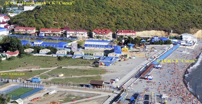 Санаторно-курортное объединение "Смена" – это комплекс спортивных, жилых, оздоровительных и культурно-массовых объектов, расположенных в долине Сукко – живописном месте на берегу Черного моря.Структура СКО «Смена»:- санаторно-курортный комплекс «Сукко» (для взрослого и семейного отдыха);- два детских санаторно-оздоровительных лагеря круглогодичного действия (ДСОЛ КД) «Заповедный» и «Южный»;Проживание:- для взрослого и семейного отдыха используются 2-х, 3-х, 4-х местные номера с удобствами категории «Стандарт», оборудованные климат-системами, холодильниками, телевизорами.- для детей - 2-5-ти местное размещение с удобствами в номере или на этаже. Спальные помещения оборудованы новой современной мебелью (кроватями тумбочками, шкафами, столами, стульями на каждого ребенка).