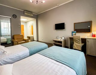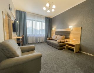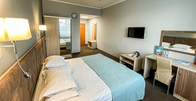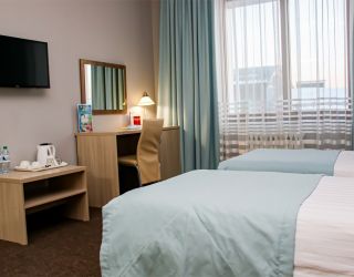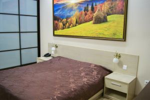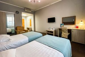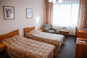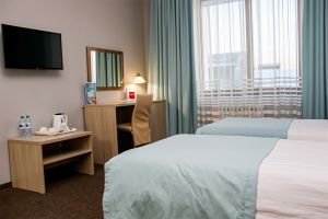 - S=26м., 2-спальная кровать, ТВ, Х, К, с\у душ, фен, выход в интернет