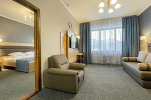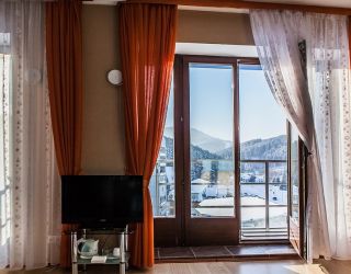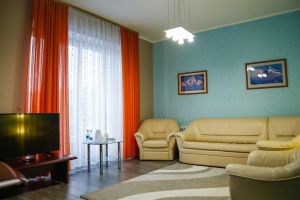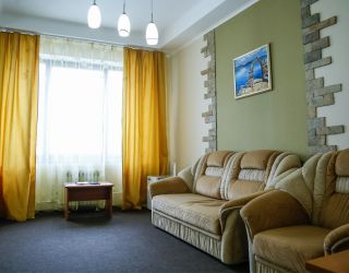 - S=72 кв.м., 2-сп. кровать, мягкая мебель, ТВ, К, чайник, с/у с ванной, биде, халат, тапочки, фен.