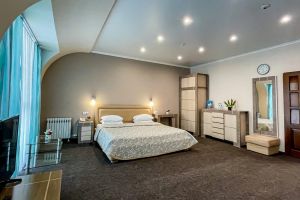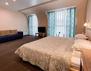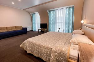 - S=98 кв.м., 2-сп. кровать, мягкая мебель, ТВ, К, чайник, с/у с ванной, биде, халат, тапочки, фен.