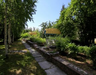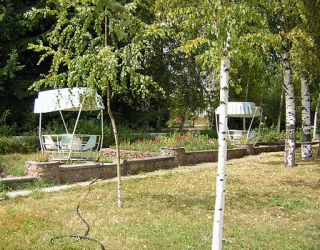 Территория озеленена дендро парком с плодовыми, хвойными деревьями, пирамидальными тополями, цветами. Благоустроеная, ухоженая, огороженая, охраняемая.