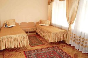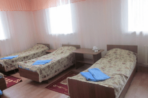 - Три кровати, шкаф, стол, стулья, тумбочки, ТВ, Х, с/у, душ с х/г водой в номере